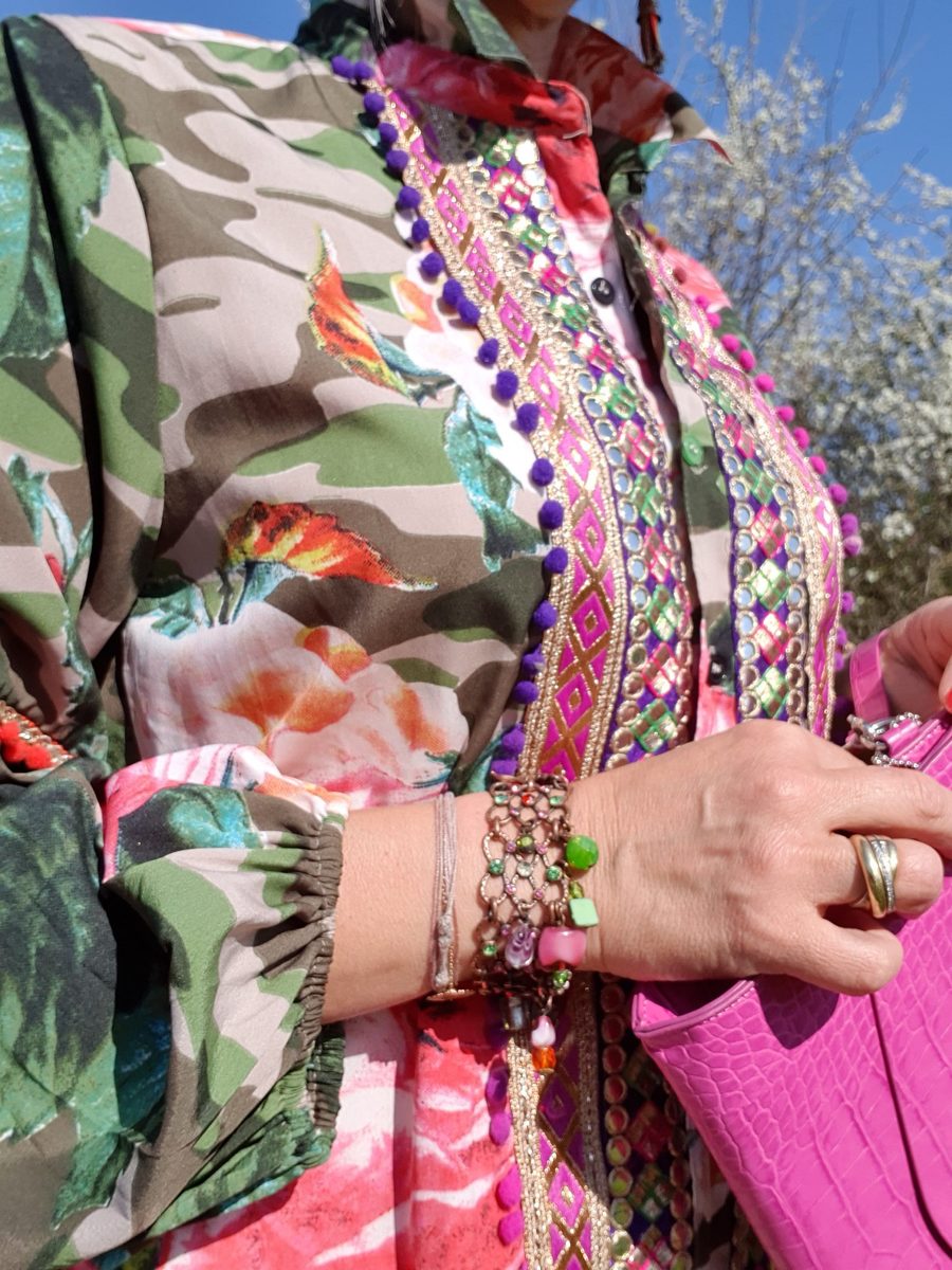 Manches bouffantes, col et boutonnière bijoux